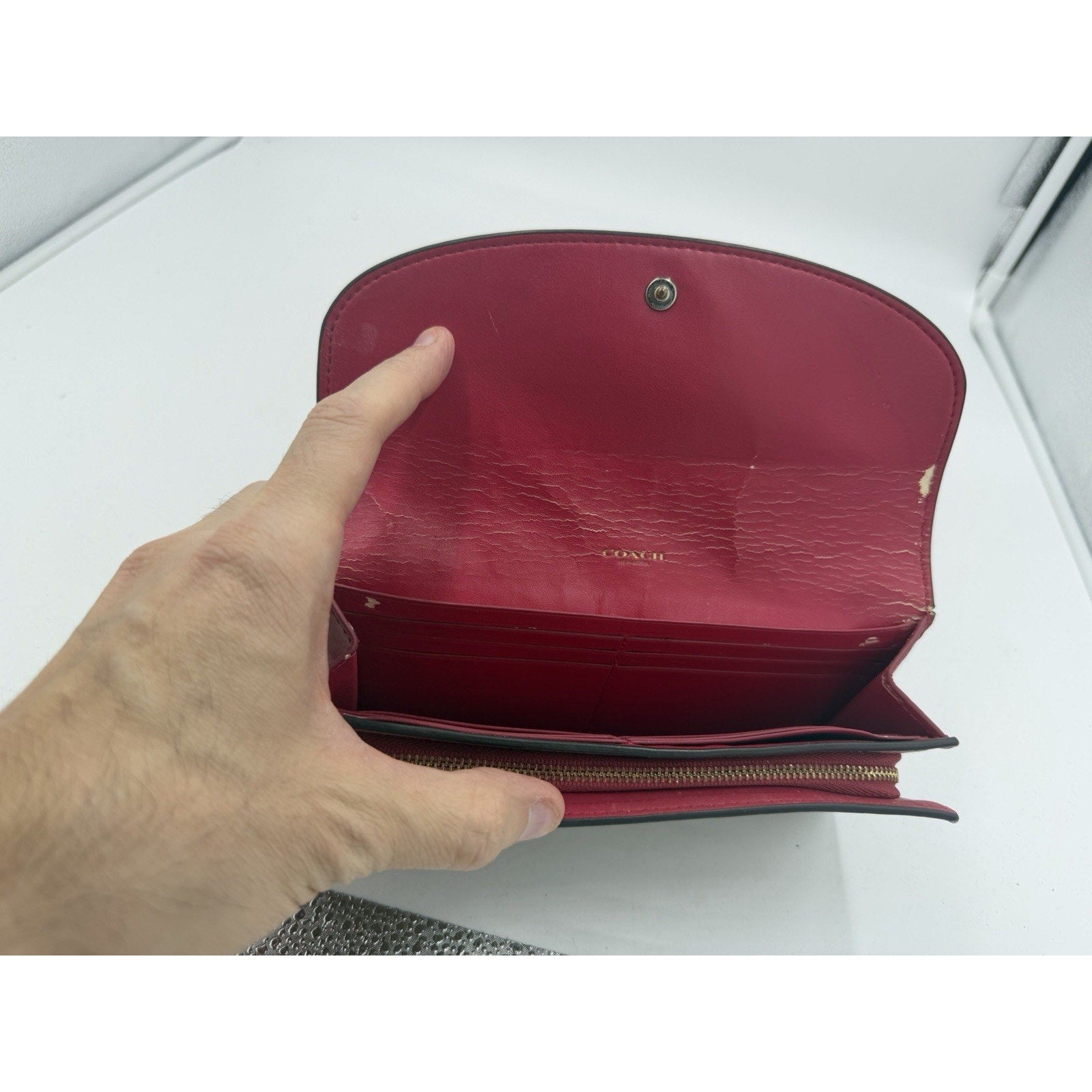 Coach Beige Red Leather Signature Tri-Fold Check-Book Buckle Wallet Used Once