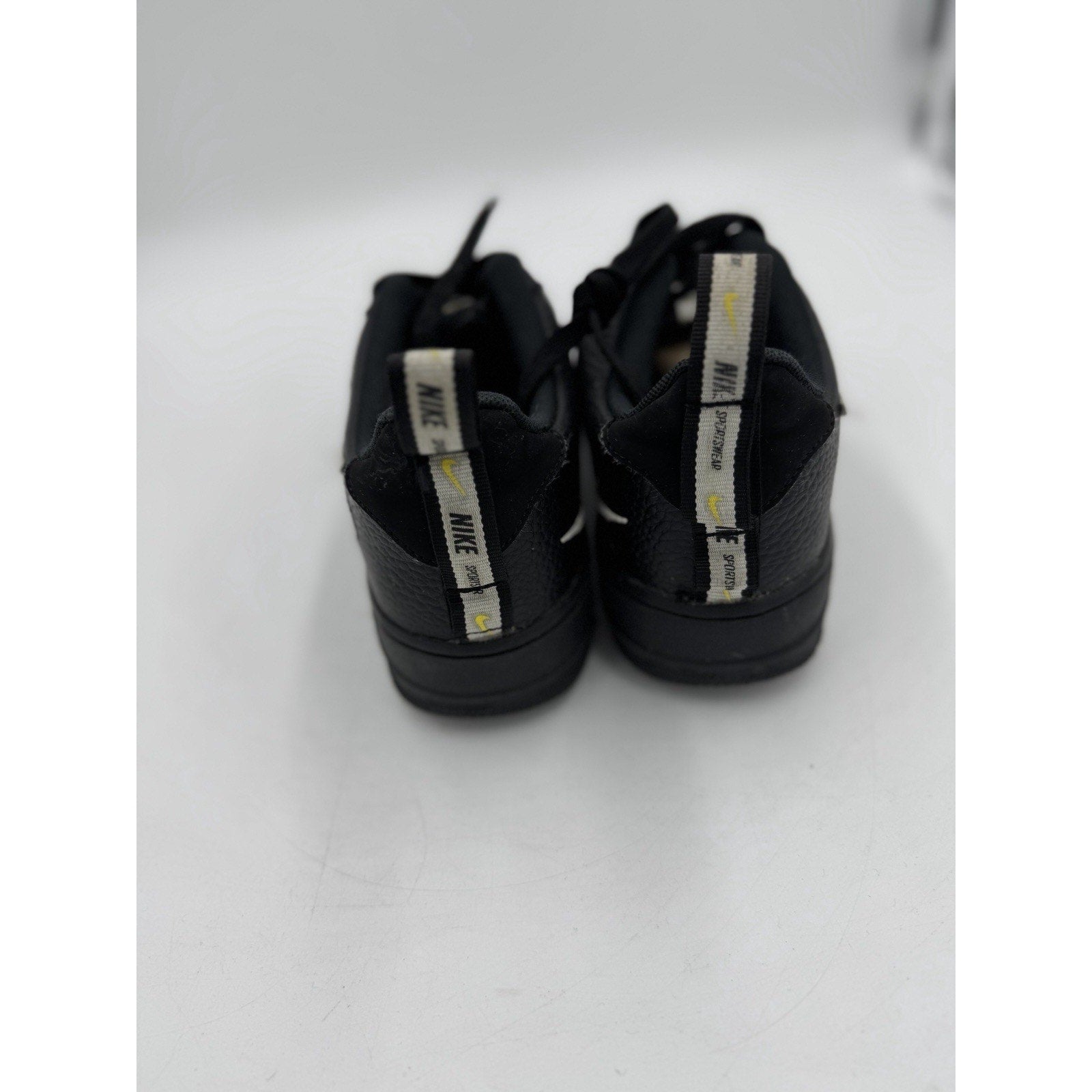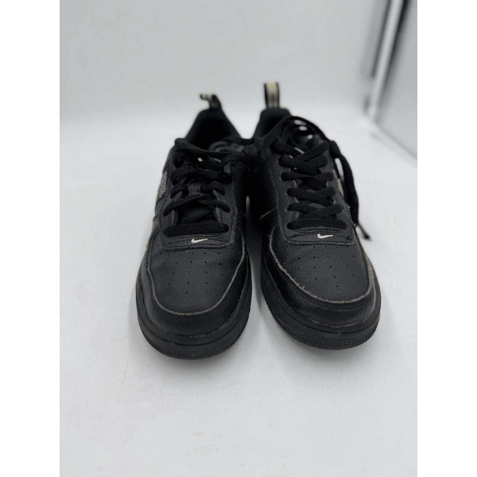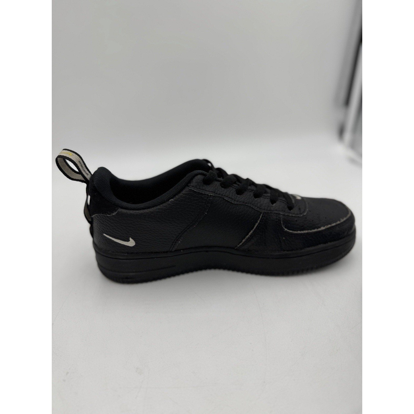 The product is a pair of Nike Air Force 1 Lv8 Utility GS sneakers in black and white colorway, designed for youth sizing 6.5y. Overbranding features add a unique touch to this popular athletic style. This unisex kids' shoe from Nike combines style and comfort, making it a must-have for young sneaker enthusiasts looking for a versatile and trendy footwear option.