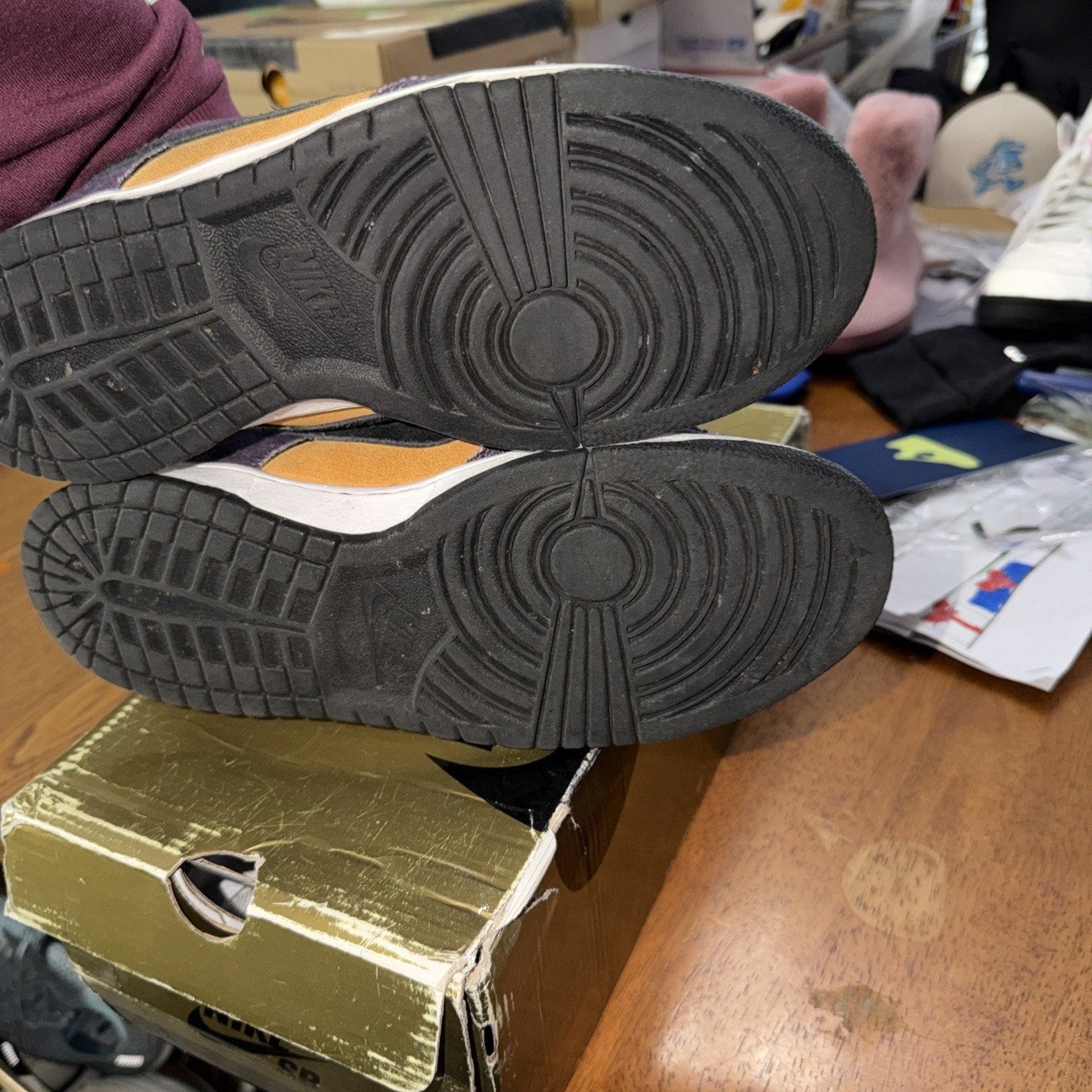 The product is a Nike SB Dunk Low Men's Goofy Boy in size 9, featuring a low top shoe shaft style in a purple colorway. This athletic sneaker belongs to the Nike SB product line, designed specifically for men and perfect for performance activities like boxing. The OG box adds to the collectability of this unique and stylish shoe model.