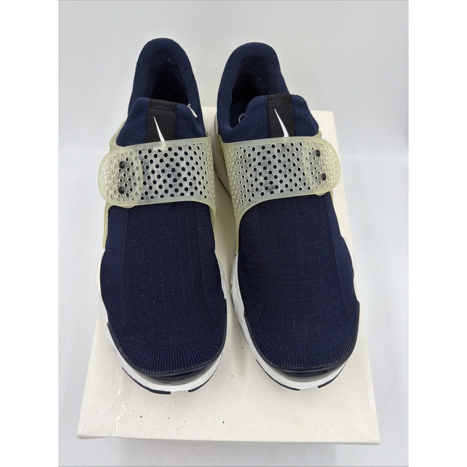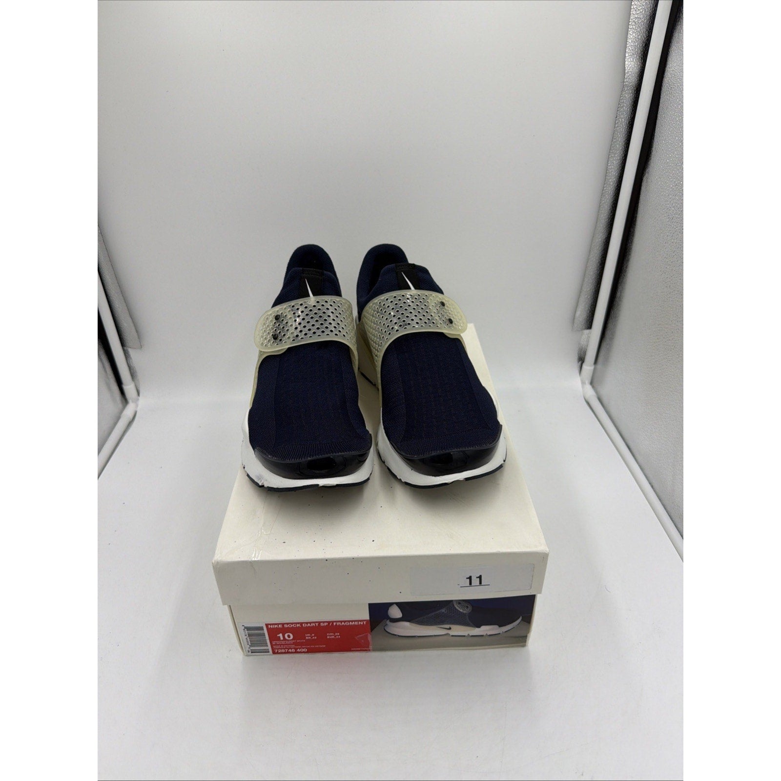 The Nike Fragment Design x Sock Dart Obsidian in size 10 is a limited edition sneaker designed in collaboration with designer fragment. Featuring a blue colorway with a unique dart character, this athletic shoe is part of the Nike Sock Dart product line. Released in 2015, this designer sneaker showcases a blend of style and functionality, making it a sought-after collectible for sneaker enthusiasts and fans of designer collaborations.