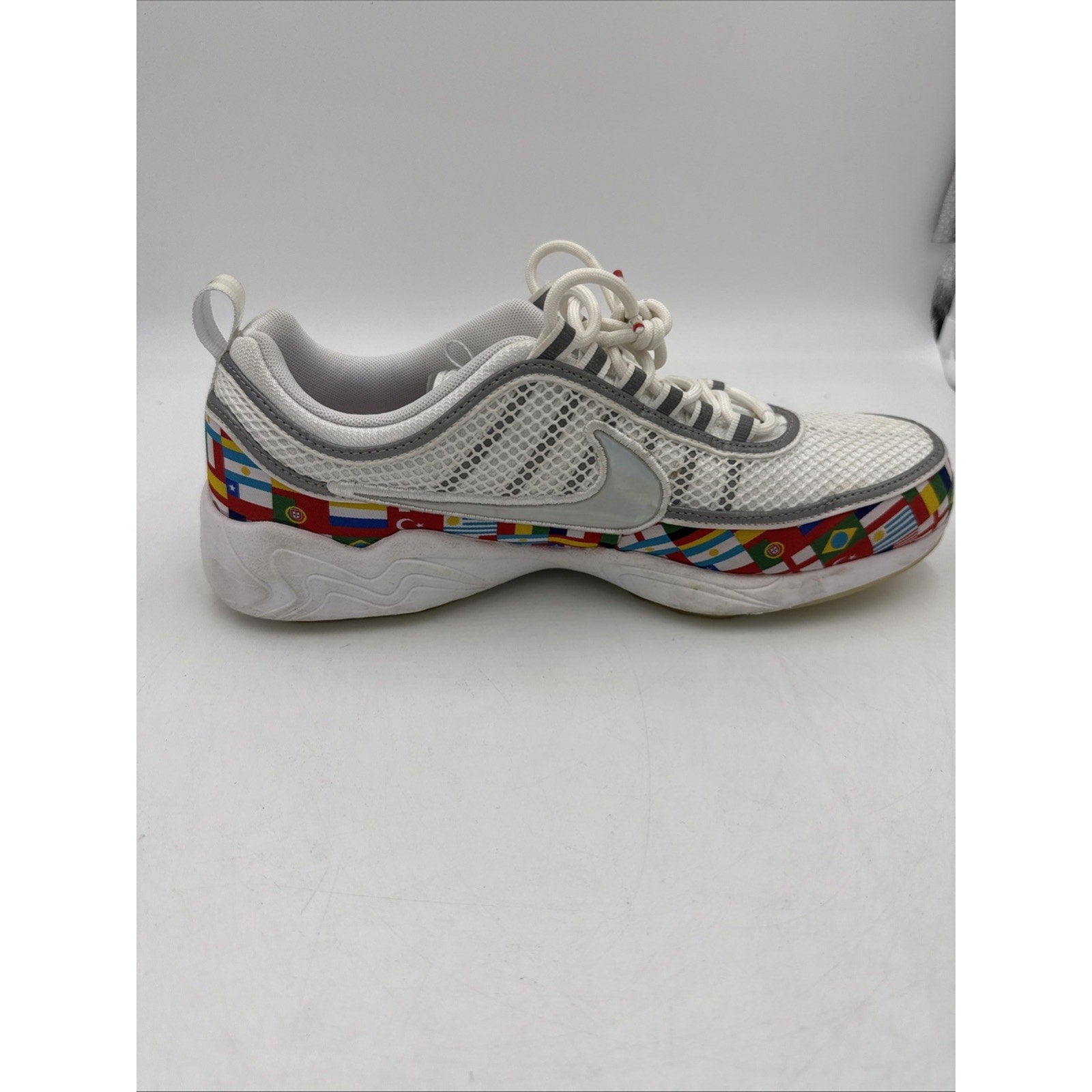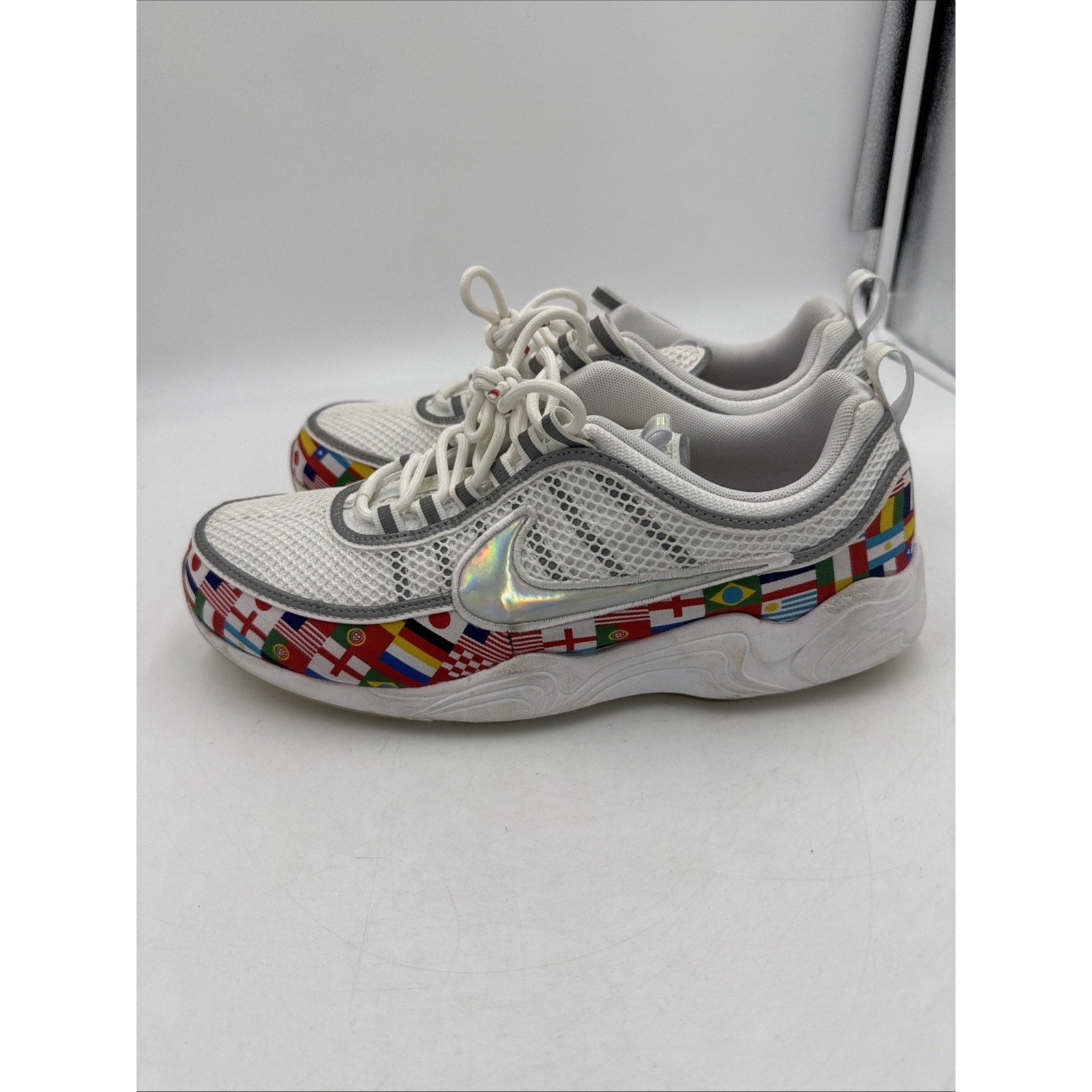The Size 11 Nike Air Zoom Spiridon '16 NIC QS International Flag is a stylish athletic sneaker designed for men. With a sleek white color and mesh upper material, this shoe is perfect for sports or casual wear. Featuring the iconic Nike Zoom Spiridon model and Air Zoom technology, this shoe provides comfort and support for all-day wear. Released in 2018, this sneaker is part of the Nike Zoom Spiridon product line, making it a versatile and fashionable choice for any sneaker enthusiast.