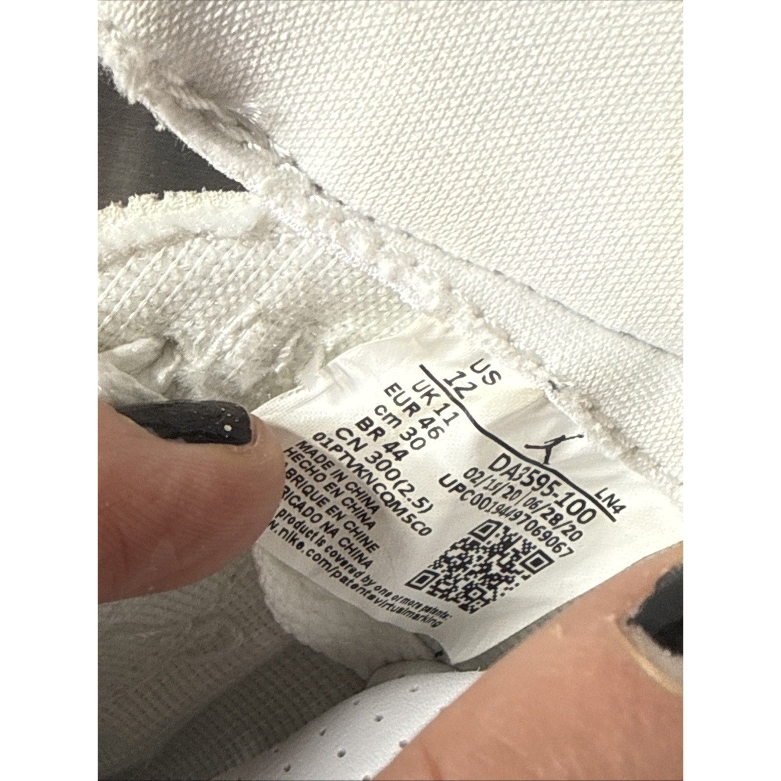 The Size 12 Jordan 3 Retro SP x Fragment Design Mid White is a stylish and high-quality sneaker designed for athletic use. This mid-top silhouette features a white color scheme with a leather upper and is part of the Air Jordan product line. Released in 2020, this designer collaboration combines the iconic Jordan 3 Retro model with the unique style of Fragment Design, making it a coveted addition to any sneaker collection. The sneaker is a statement piece for men looking for a combination of fashion and functionality in their footwear.
