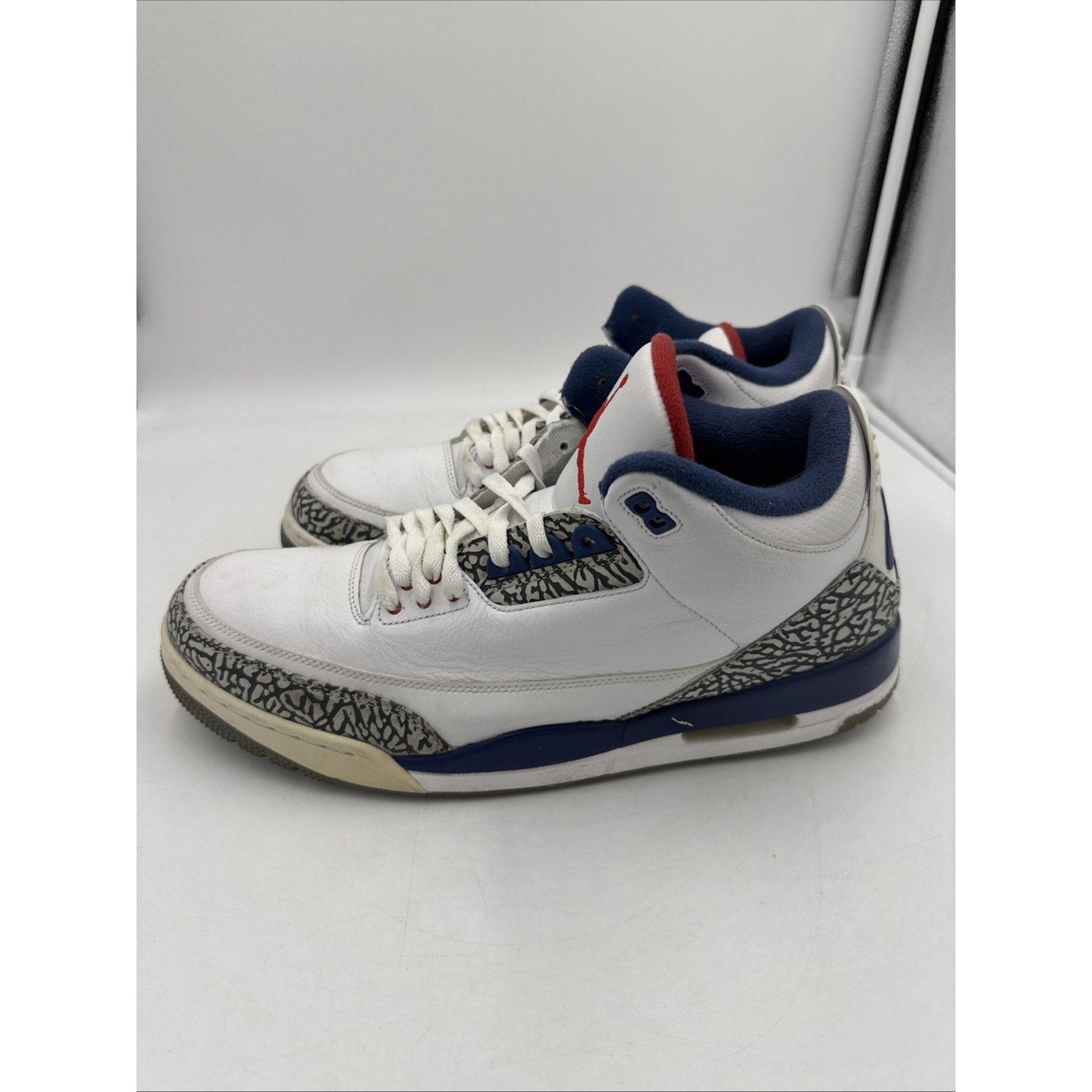 The product is a pair of Jordan 3 Retro OG Mid True Blue sneakers in size 15, released in 2016. These mid-top sneakers feature a white colorway with the iconic retro theme. The Air Jordan 3 silhouette, bearing the style code 854262-106, is part of the Air Jordan product line and is designed for athletic use. With the Jordan brand known for its quality and style, these sneakers are a sought-after addition to any sneaker collection for men looking for a classic and comfortable athletic shoe option.