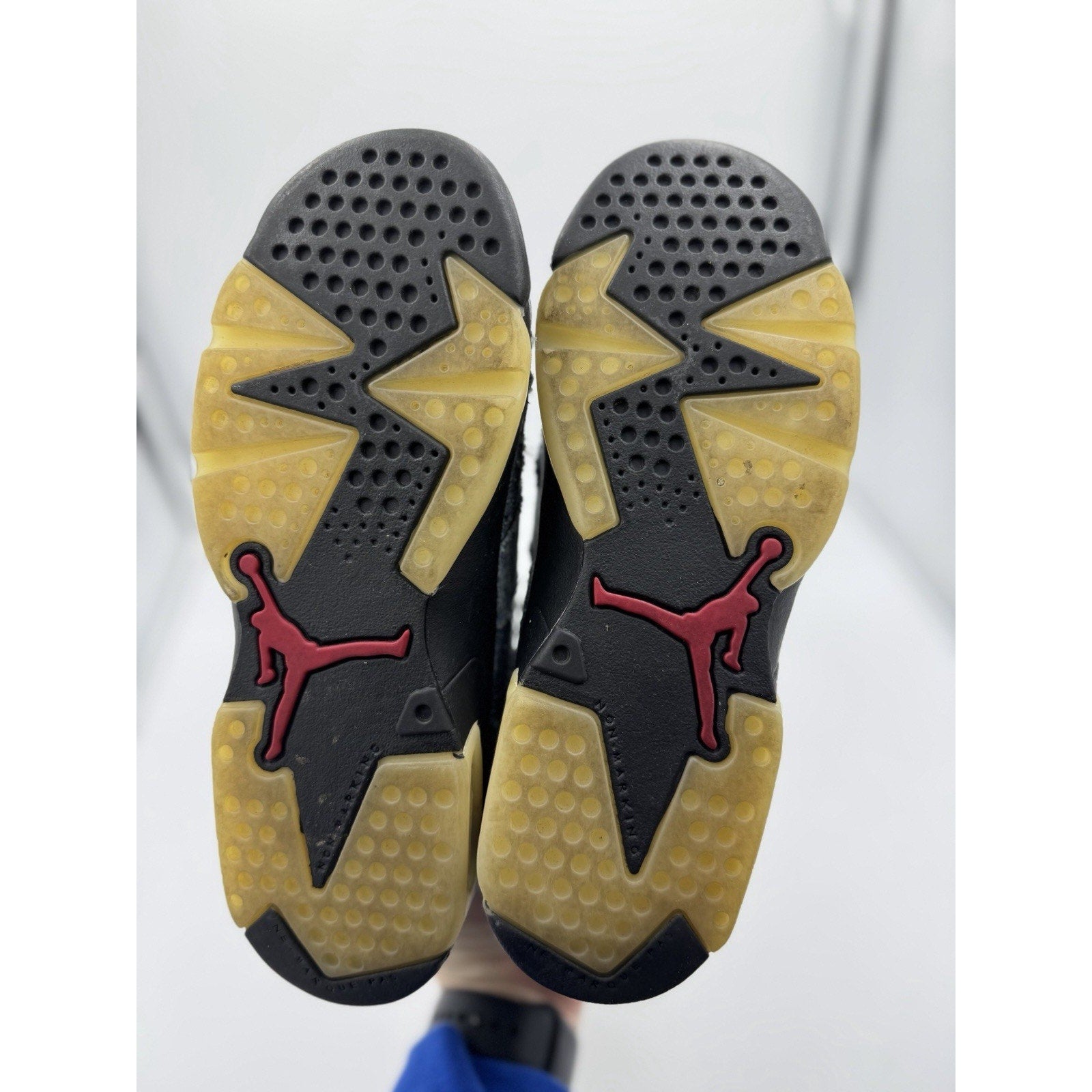 The product is a Size 6 (GS) Jordan 6 Retro High Washed Denim sneaker from the Air Jordan product line. This unisex kids' shoe features a high top design in a blue denim color, perfect for young fans of the Jordan brand. With a retro theme and classic sneaker style, these athletic shoes offer both style and comfort for kids who want to rock the iconic Air Jordan 6 model.