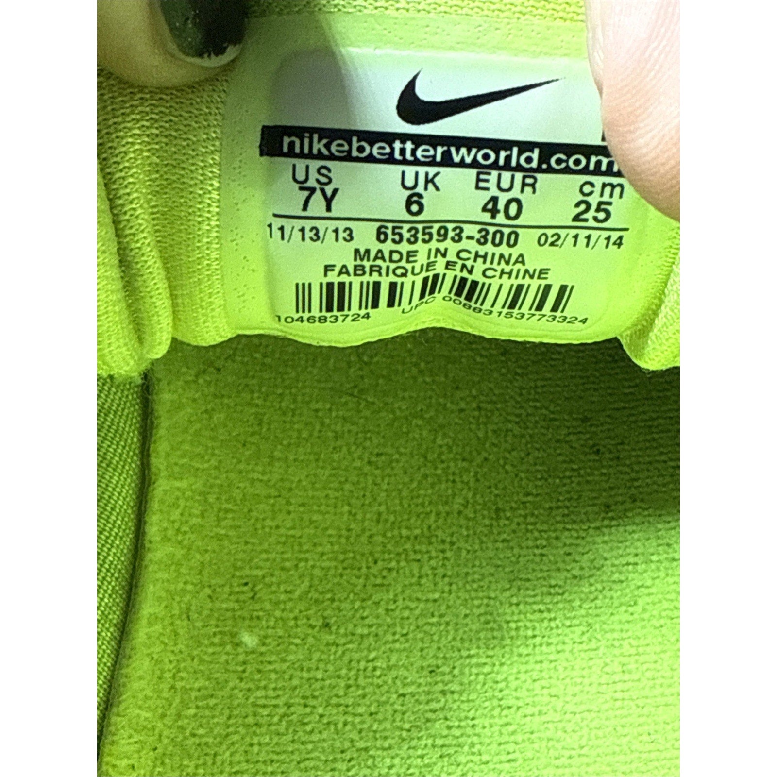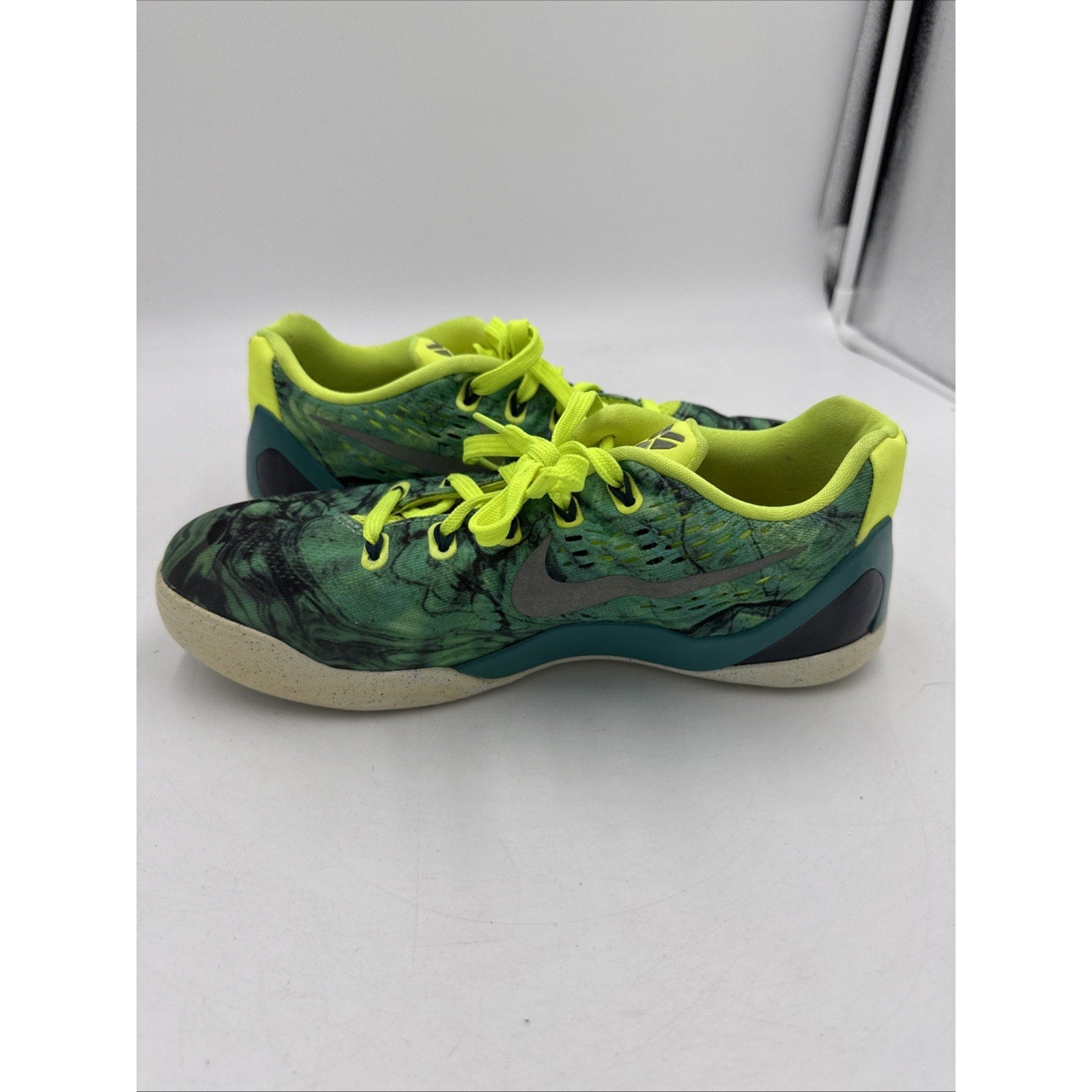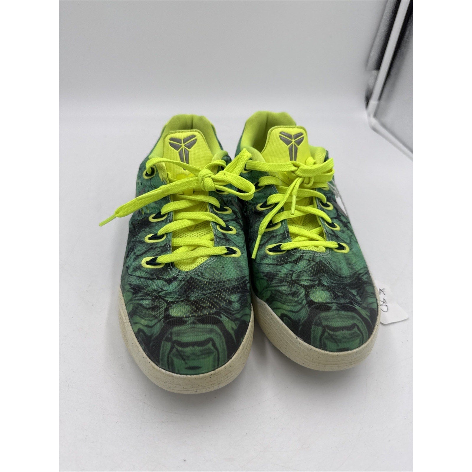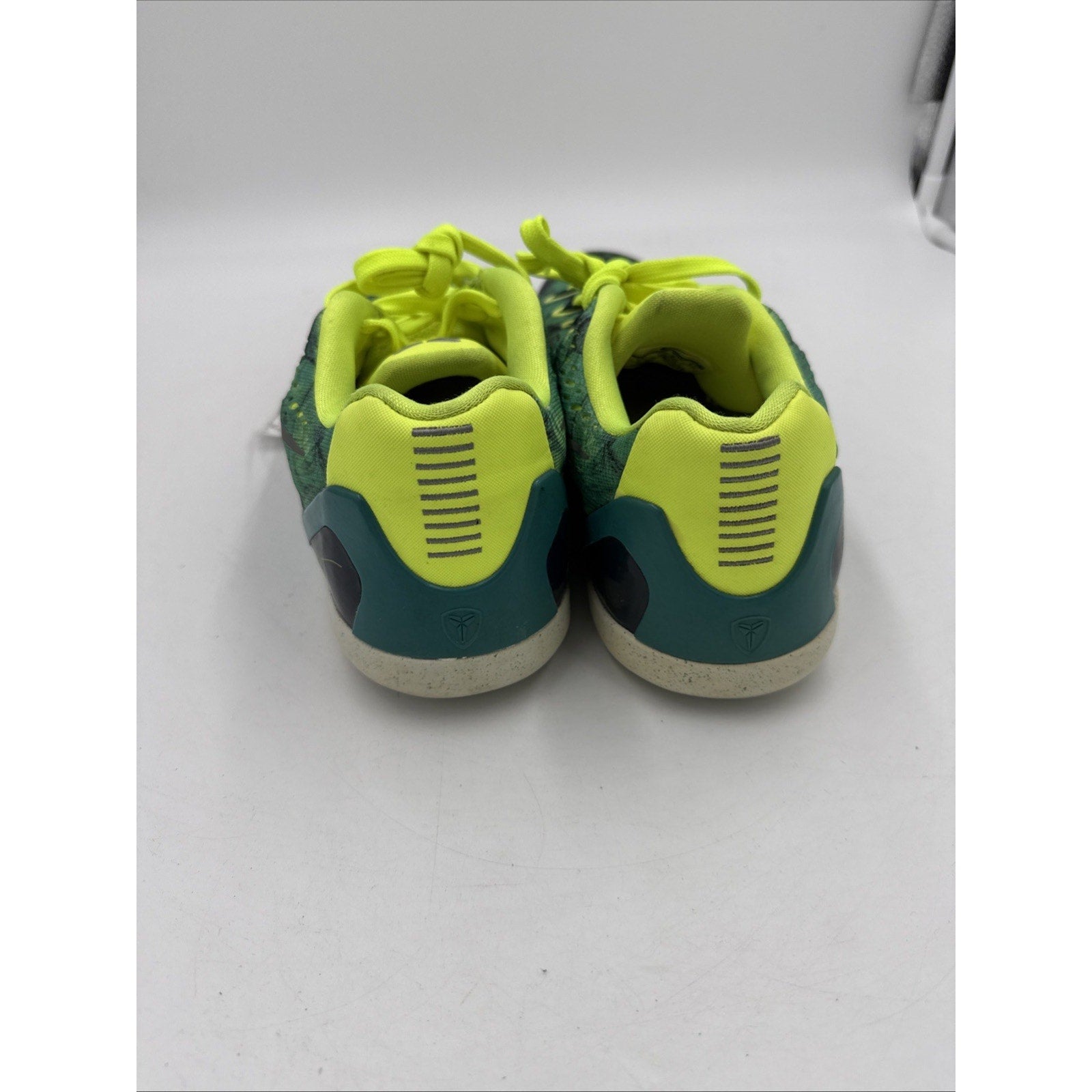 The product is a pair of Nike Kobe 9 EM Low Easter sneakers in size 7 (GS). These athletic shoes feature a low top design and are part of the Nike Kobe product line. The color of the shoes is green and they are styled with an Easter theme, making them a fun and stylish choice for boys or unisex kids. The Nike brand is known for its quality and performance, making these sneakers a great addition to any young athlete's wardrobe.