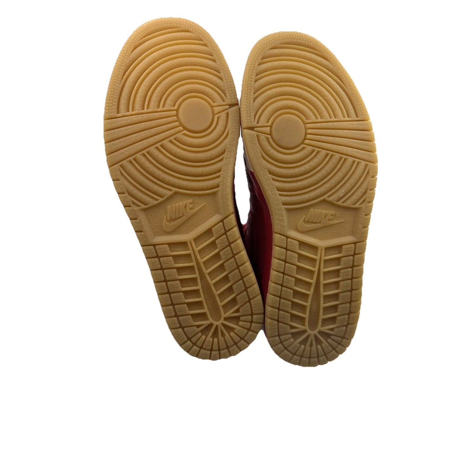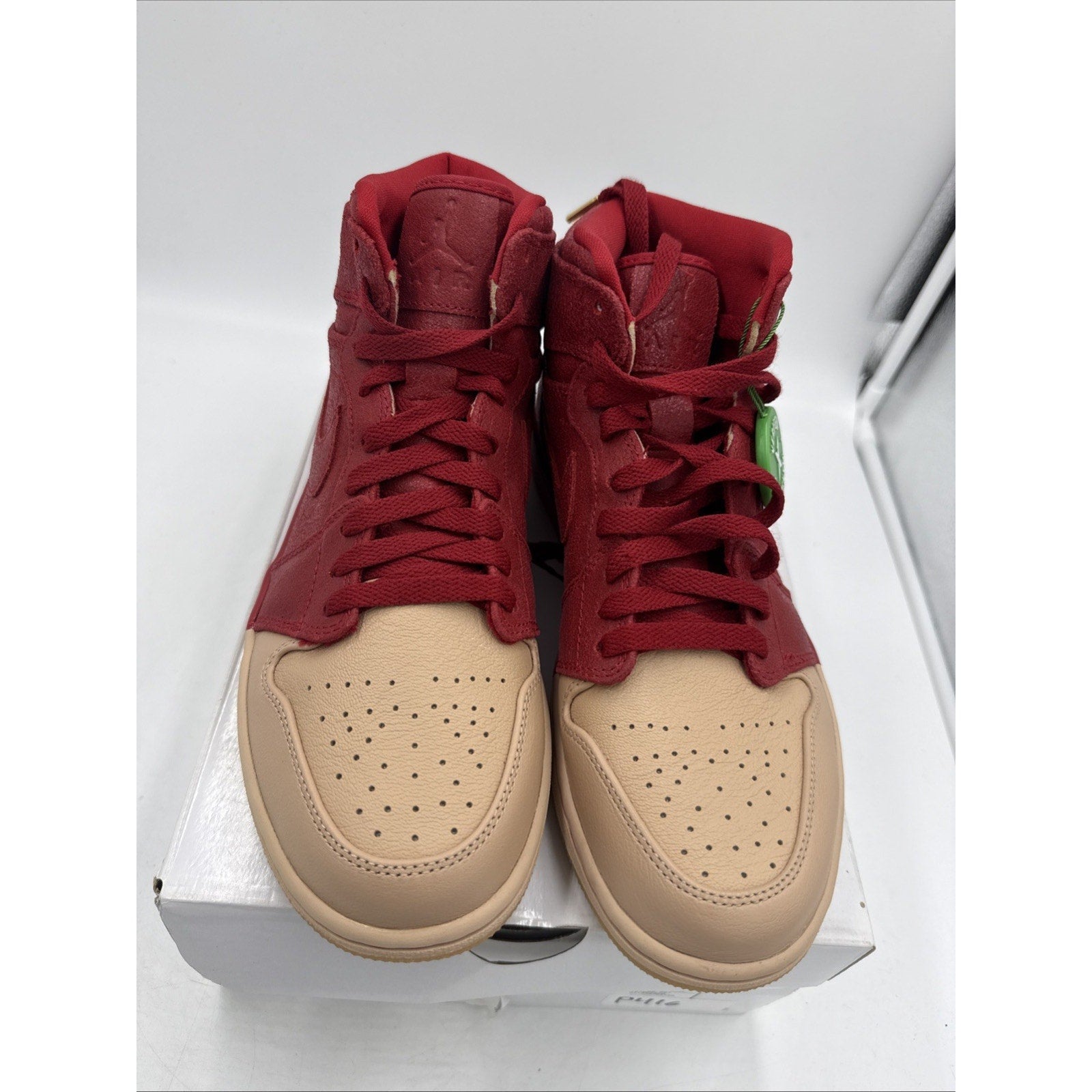 The product is a pair of Air Jordan 1 Retro Premium High Dipped Toe sneakers in a red color, featuring a high top shaft style and made of leather material. With a US shoe size of 9.5 and released in 2018, these athletic shoes are part of the Air Jordan product line and are designed specifically for women. The model number is AH7389-607, showcasing the iconic Air Jordan 1 silhouette and style, making them a desirable option for sneaker enthusiasts and Jordan collectors alike.