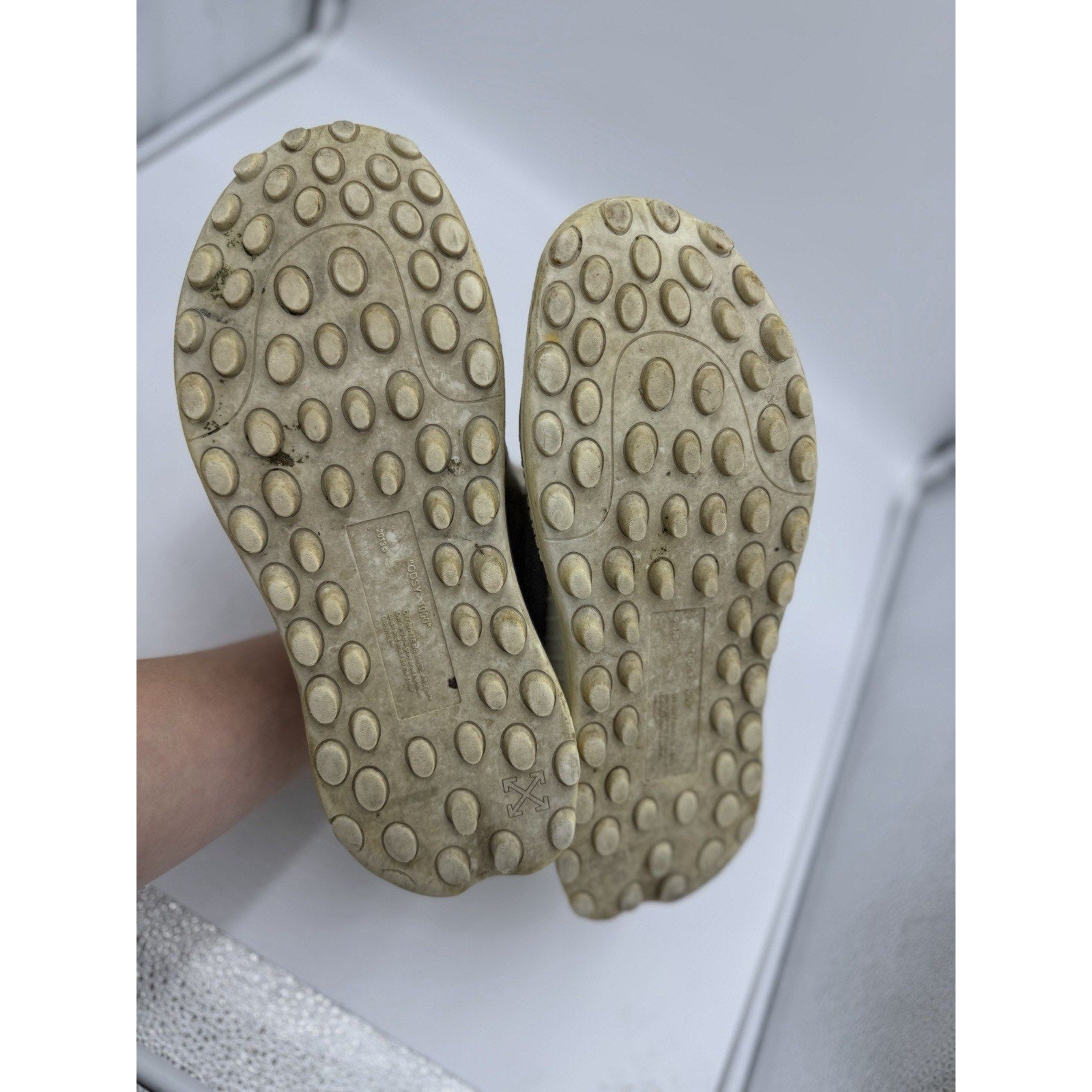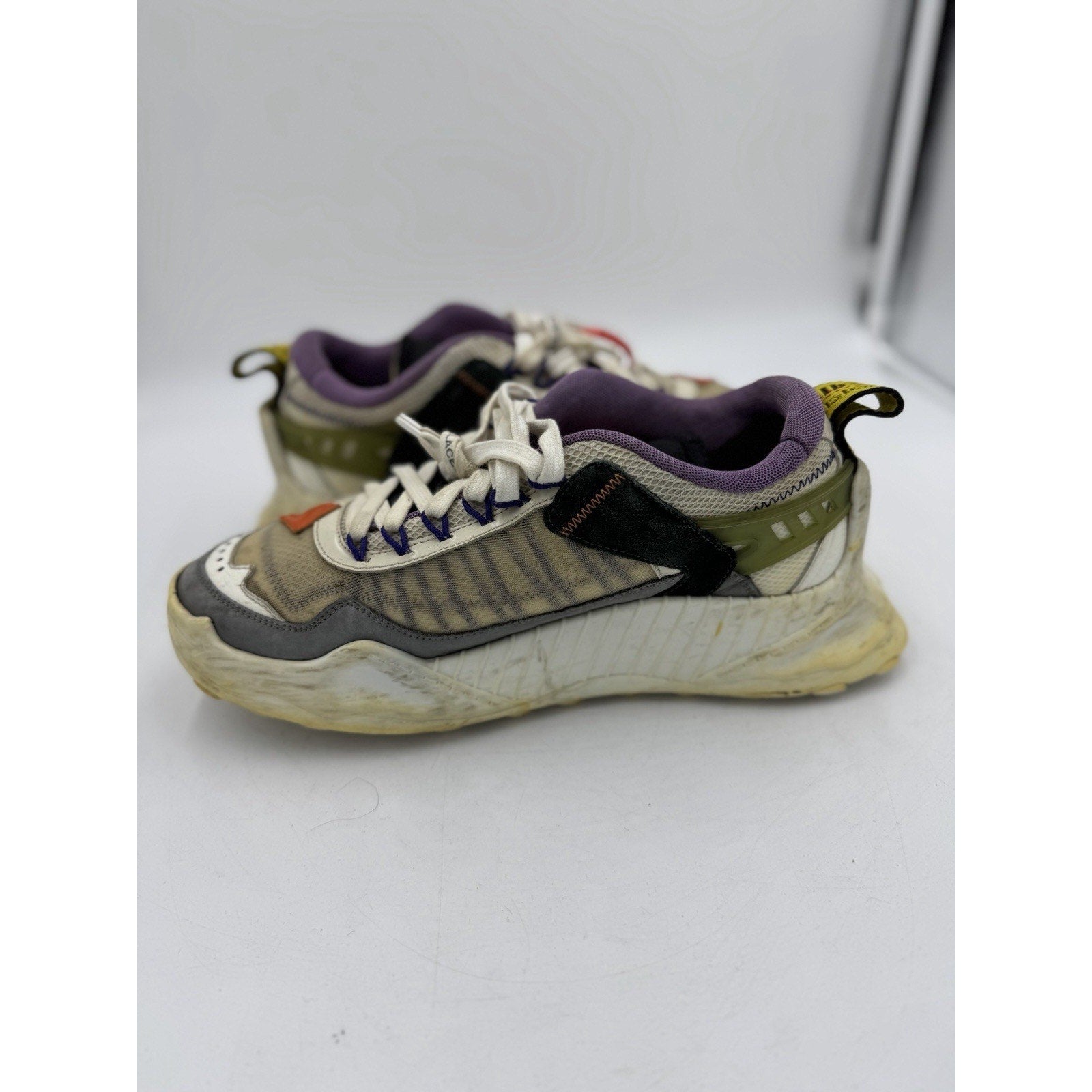 The product is a pair of Off-White ODSY-1000 sneakers in size 9, featuring a white and orange color scheme. This athletic shoe was released in 2020 and is designed specifically for men. With its unique style and brand, these sneakers are a trendy and stylish choice for those looking to add a pop of color to their footwear collection. The Off-White brand is known for its designer sneakers, making these shoes a fashionable and high-quality addition to any wardrobe.