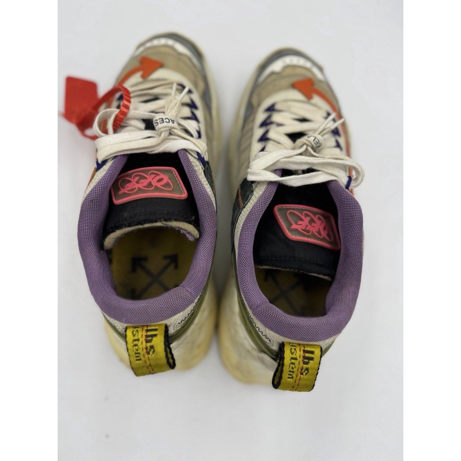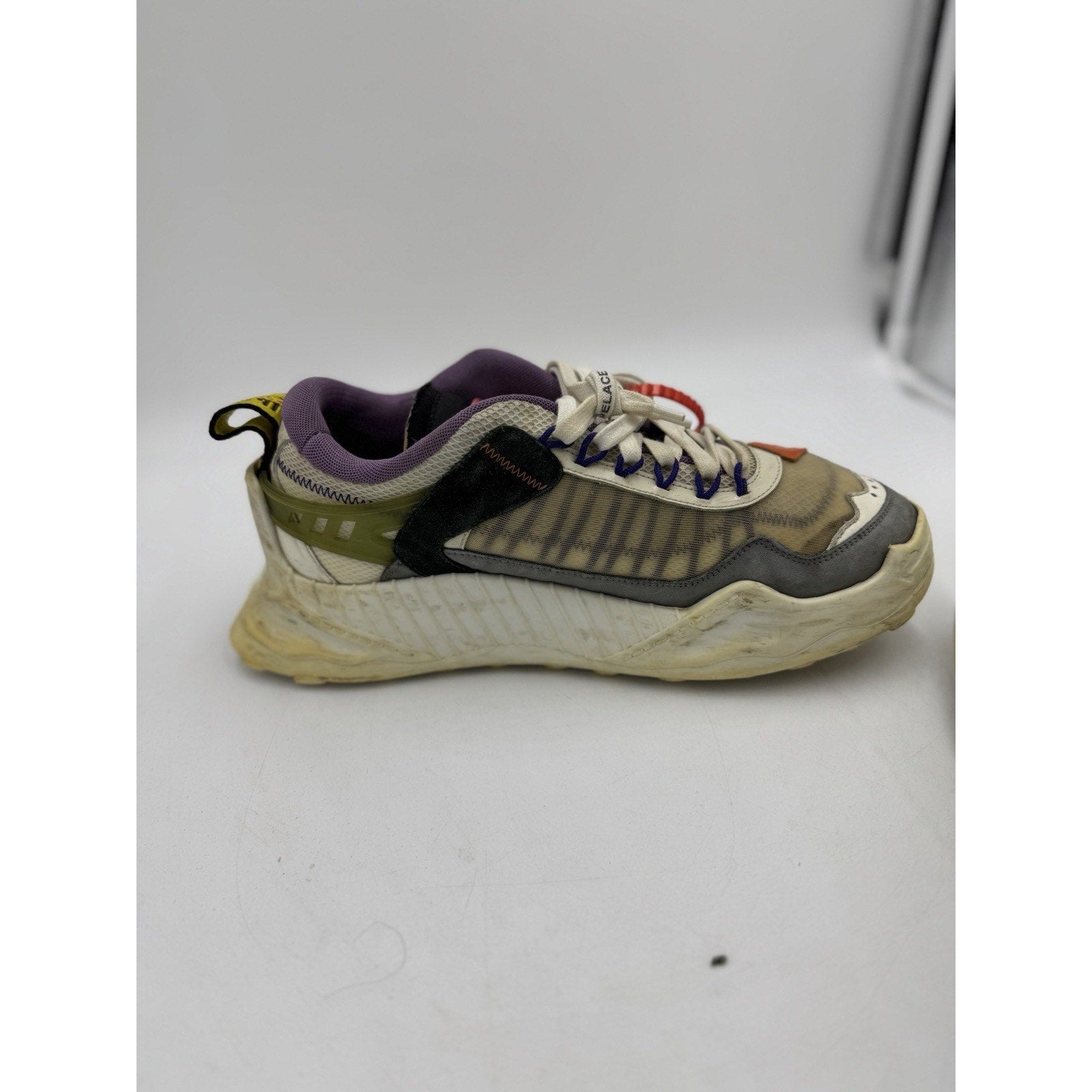 The product is a pair of Off-White ODSY-1000 sneakers in size 9, featuring a white and orange color scheme. This athletic shoe was released in 2020 and is designed specifically for men. With its unique style and brand, these sneakers are a trendy and stylish choice for those looking to add a pop of color to their footwear collection. The Off-White brand is known for its designer sneakers, making these shoes a fashionable and high-quality addition to any wardrobe.